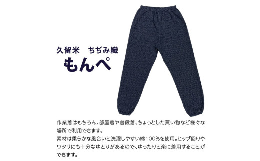 吸汗速乾ちぢみ織軽くて涼しいリラックスフィットもんぺです