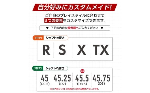 ■必ずご希望の「シャフトの硬さ」を備考欄へご記入ください。