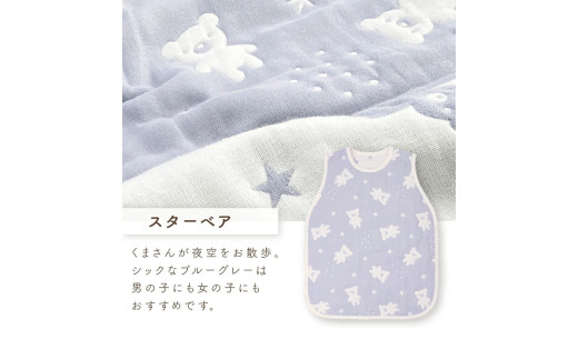 6重ガーゼ寝袋(スターベア)_6重 ガーゼ 寝袋 スリーパー スターベア くまさん 夜空 ブルー グレー 男の子 女の子 おすすめ 心地よい サイズ感 着せ替えしやすい はだけにくい オールシーズン 1年中 使える 子供服 ベビー用品 赤ちゃん 赤ちゃんの城 福岡県 久留米市 送料無料_Sd023