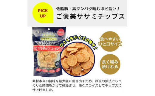 ひと口サイズで食べやすい、こだわりの国産ササミチップス。