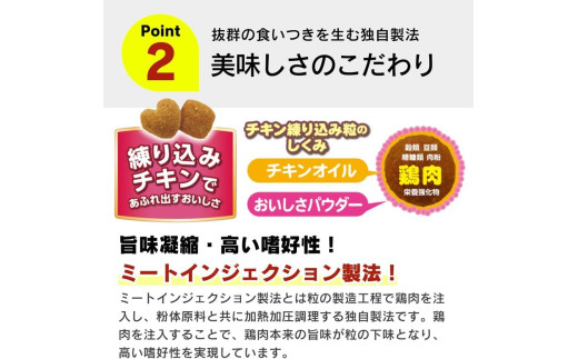 練りこみチキンで粒の中から溢れだすおいしさ。オールステージ用総合栄養食。