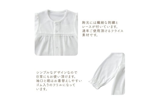 たっぷりとあしらわれたレースが赤ちゃんのお顔まわりを華やかに演出します。