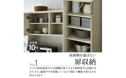 7. 【開梱設置】キッチンボード 【セイル 90】 ヒッコリーホワイト_開梱設置 キッチンボード セイル 90 大川家具 ヒッコリーホワイト キッチン 家具 完成品 食器棚 耐震 機能性抜群 収納 一口コンセント付き お手入れ 簡単 お洒落 日本製 お取り寄せ 福岡県 久留米市 送料無料_Qd051-02