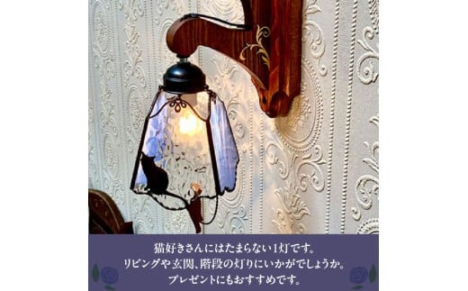 猫さんがそっと灯を点してくれる、ステンドグラス ブラケットライト
