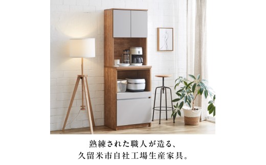 7. 【開梱設置】キッチンボード カフェ60 60上台(OP)+スライドオープン(ホワイト)_開梱設置 キッチンボード カフェ 60 大川家具 上台OP 下台 スライドオープン ホワイト 耐震ダボ 可動棚 扉 引出し 収納 コンセント付き キッチン 家具 国内製造 お取り寄せ 福岡県 久留米市_Qd094-04