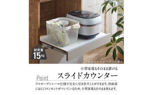 ・家電収納部には1口コンセントを装備。