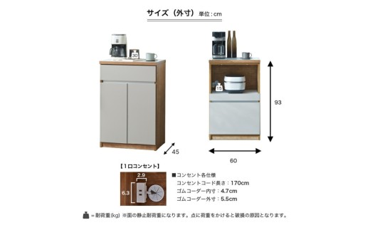 外寸(cm):幅(W)60×奥行(D)45×高さ(H)93