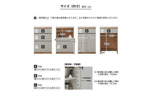 7. 【開梱設置】キッチンカウンター カフェ60 開き戸タイプ(ホワイト)_開梱設置 キッチンカウンター カフェ 60 大川家具 下台 開き戸 ホワイト 耐震ダボ 可動棚 扉 引出し 収納 キッチン 家具 国内製造_Qd096-07