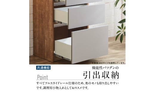 ・下台の引出はフルオープンレールとなっており、小物を無駄なく収納できます。