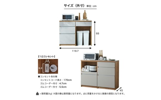 外寸(cm):幅(W)119.7×奥行(D)45×高さ(H)93