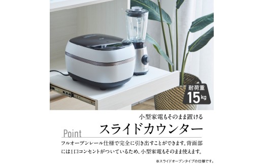 7. 【開梱設置】キッチンカウンター カフェ120 3段引出+スライドオープン(ナチュラル&グレー)_開梱設置 キッチンカウンター カフェ 120 大川家具 下台 3段引出 スライドオープン ナチュラル&グレー 引出し 収納 スライドカウンター キッチン 家具 国内製造_Qd097-06