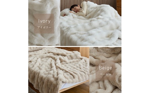 7. LUXZA ラビットファー ブランケット シングル(アイボリー)_LUXZA シングル アイボリー ひざ掛け 毛布 もこもこ 洗える 高密度 生地 静電気防止加工 お取り寄せ 福岡県 久留米市 送料無料_Qc081-iv