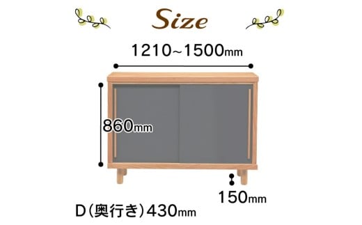 サイズ:幅121~150cm×奥行43cm×高さ86cm(+脚15cm)