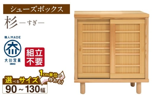 【組立不要】大川家具 シューズボックス[杉]幅90~130cm(1cm刻みでオーダー可能) _ 大川家具 シューズボックス 杉 選べる 幅 90 ~ 130cm 国産 靴箱 組立不要 純和風 可動棚 アジャスター 調整可能 ロータイプ 玄関収納 環境に優しい 無垢材 和テイスト モダン 消臭効果 リラックス効果 日本製 お取り寄せ 福岡県 久留米市 送料無料 _Qd113