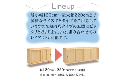 7. 【組立不要】大川家具 シューズボックス[令和]幅171~180cm(1cm刻みでオーダー可能) _ 大川家具 シューズボックス 令和 選べる 幅 171 〜 180cm 国産 靴箱 組立不要 純和風 ひのき 可動棚 アジャスター 調整可能 ロータイプ 玄関収納 環境に優しい 無垢材 和テイスト モダン 抗菌 防虫効果 日本製 お取り寄せ _Qd120