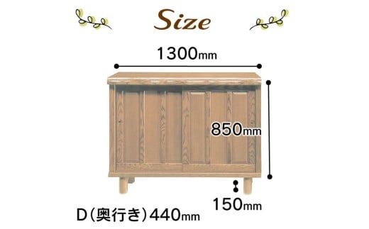 サイズ:幅130cm×奥行44cm×高さ85cm(+脚15cm)