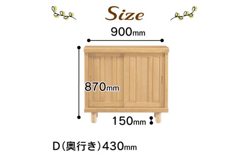 サイズ:幅90cm×奥行43cm×高さ87cm(+脚15cm)