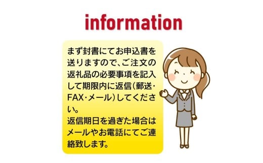 ご入金確認後、返礼品申込書兼配送依頼書をお送りします。