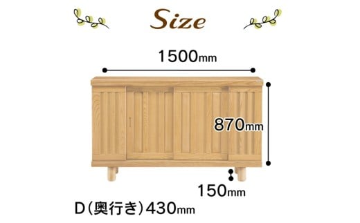 サイズ:幅150cm×奥行43cm×高さ87cm(+脚15cm)