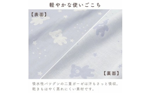 吸水性抜群の二重ガーゼは汗もさっと吸収。乾きも早く蒸れにくい素材です。