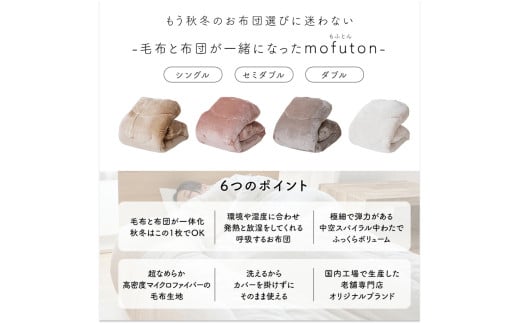 毛布と掛け布団が一緒になった発熱放湿毛布ふとん「mofuton(モフトン)」です。