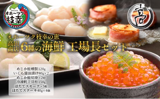 オホーツク枝幸の恵 高田商店 6種の海鮮 工場長セット 【 魚貝類 帆立 ホタテ いくら 魚卵 サーモン 鮭 北海道 】