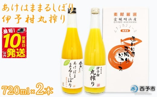 <あけはままるしぼり 720ml×1本 伊予柑丸搾り 720ml×1本「AK-2」> 温州みかん ミカン オレンジ ジュース あけはまシーサイドサンパーク 特産品 贈答用 愛媛県 西予市 【常温】『最短10営業日以内に順次発送予定』