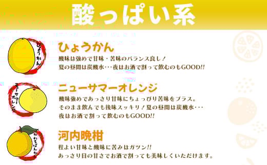 ※みかん、みかん&まどんな、ぽんかん、はるか、せとか、なつみ、ぽんかん&かんぺい、ひょうかん、ニューサマーオレンジ、河内晩柑、ミックス5、ミックス7