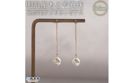 <明浜産あこや真珠8.5mm K10YGアメリカンピアス> パール ジュエリー アクセサリー フォーマル カジュアル ギフト 西予市 贈り物 祝 冠婚葬祭