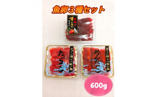 人気の魚卵3種セット(たらこ、めんたいこ、塩筋子)計600g【1401648】
