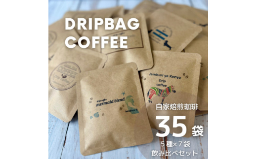 <自家焙煎>香り豊かなドリップバックコーヒー 飲み比べ35袋セット(5種×7袋)【1612529】
