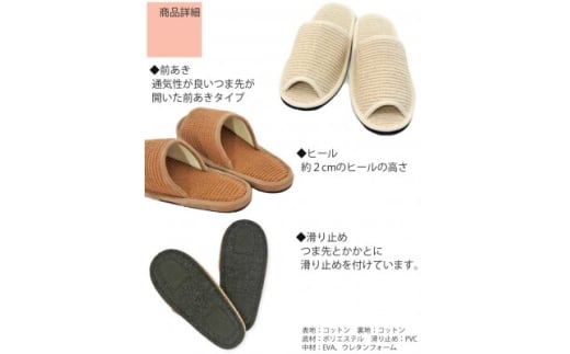 スリッパ インドコットンMサイズ ベージュ つま先滑り止め付き【1642078】