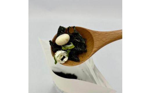 わかめ(三陸産)、茎わかめ(三陸産)、風味調味料(食塩、ぶどう糖、風味原料(かつお節粉末、そうだかつお節粉末)、酵母エキス、はん白加水分解物)、ねぎ、食塩、焼麩(小麦を含む)、とろろ昆布、ふのり、粉末醤油(小麦・大豆を含む)、焼きあご調味料/調味料(アミノ酸等)