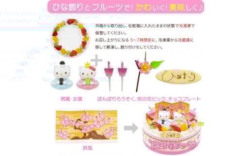 卵不使用ひな祭りケーキハローキティ生クリーム 5号 直径15cm 4~6名様用