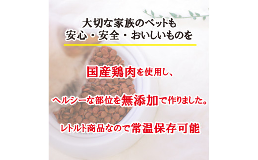 国産鶏肉、ヘルシーな部位を無添加で作りました。レトルト商品なので常温保存OK。