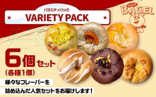 【ベーグル専門店】ベーグル バラエティパック(6個入) ▼母の日 スーパーベーグル ベーグル 冷凍 冷凍保存 パン 詰め合わせ 朝食 手作り もちもち 間食 惣菜 ぱん 食べ比べ 桂川町/SUPER BAGEL[ADBI001]