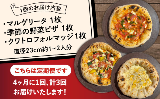 【4か月ごとにお届け:全3回】 【合鴨家族の小麦と桂川町の野菜使用】 人気3種セット(マルゲリータ、季節の野菜ピザ、クワトロフォルマッジ) ▼ピザ pizza セット 冷凍 国産 桂川町/PIZZERIA TUTTI [ADBH029]