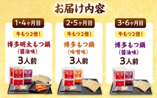 【全6回定期便】 【牛もつ2倍!】【ご家庭用】もつ鍋3種定期便(明太・味噌・醤油)3人前 桂川町/株式会社 海千 [ADAR040]