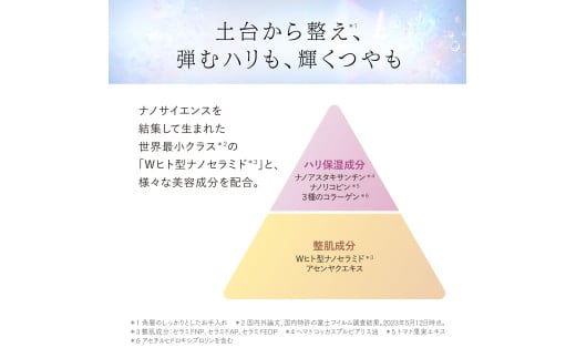 独自のナノ・サイエンスで極小化した「ナノアスタキサンチン(*1)」&「ナノリコピン(*2)」のWの赤の力が、ハリ肌を守ります。