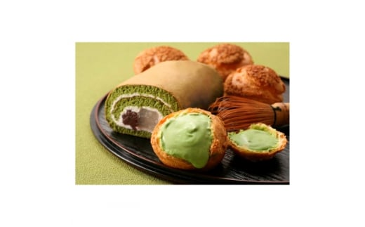 宇治抹茶使用 抹茶わらびロールと抹茶シュークリームセット 作家望月麻衣さんのエッセイ付【1233179】
