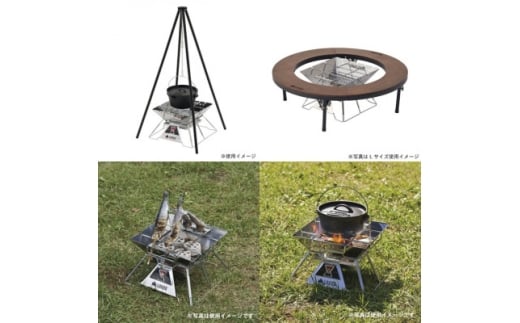 構成:本体、たき火ゴトク(串焼きプレート付)、ワイヤーロストル、収納バッグ