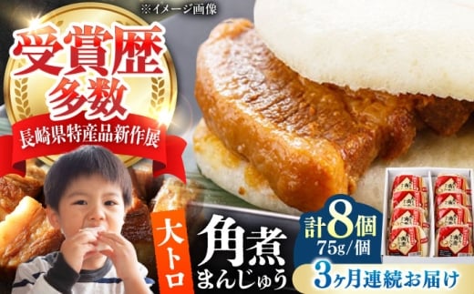 【全3回定期便】大とろ 角煮まんじゅう 8個(1箱) 《対馬市》【岩崎本舗】冷凍 角煮 角煮まん 個包装 豚まん [WBC052]