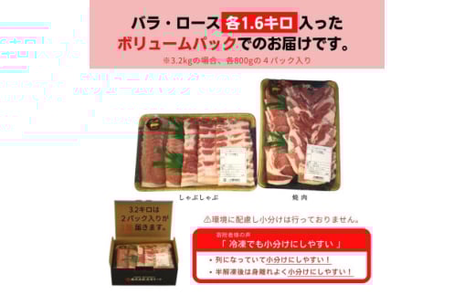 <ふるさと納税限定>くんじゃん豚 食べ比べセット 焼肉・しゃぶしゃぶ 計3.2kg【1618652】