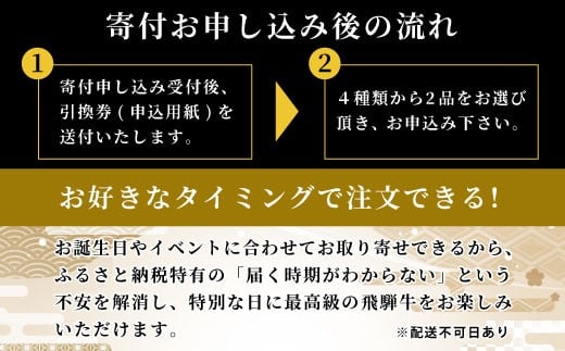 厳選したA5ランクの飛騨牛を2品選べるプレミアム商品券