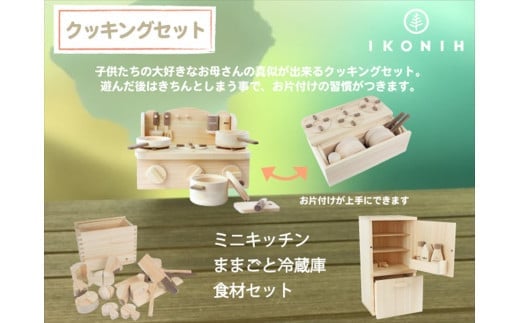 ミニキッチン、食材セット、ままごと冷蔵庫のセット 1セット