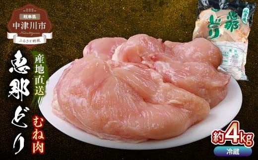 恵那どりむね肉 計4kg 小分け 真空パック 大容量 セット 鶏肉 F4N-2401