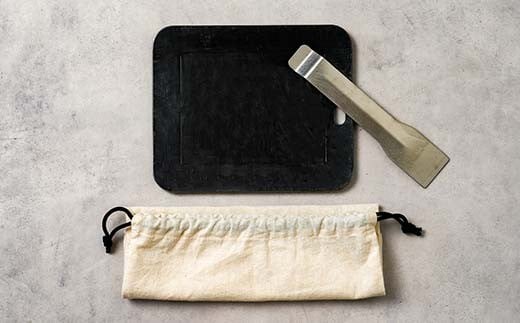 ミニコン炉S(黒皮)&厚板鉄板 ソロキャン用(スクレーパー、巾着袋付き)のセット F4N-2344