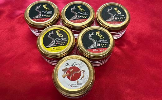 【金のキャビアと下記5種のキャビア、合計6種をお届けします】