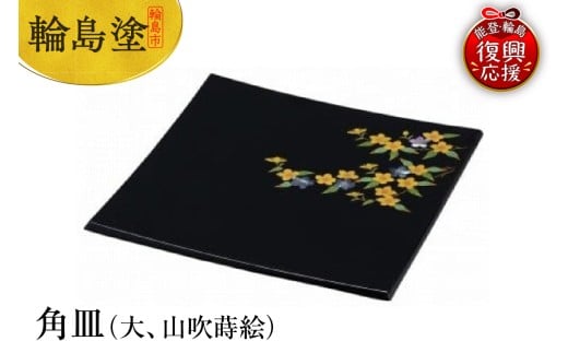 たて約24.5cm×よこ約24.5㎝×高さ約2.1cmの輪島塗の角皿です。