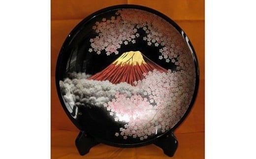 重厚な塗りで仕上げられた飾皿です。富士山がとても綺麗な輪島塗の飾皿です。